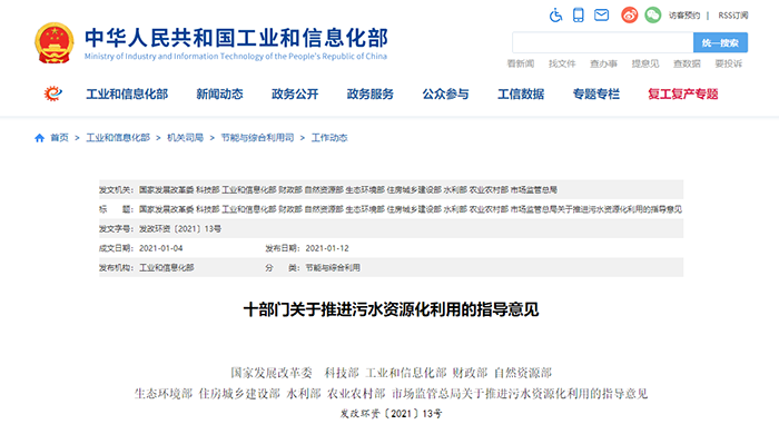 近日,國家發(fā)展改革委聯(lián)合科技部、工業(yè)和信息化部、財(cái)政部、自然資源部、生態(tài)環(huán)境部等十部門共同印發(fā)了《關(guān)于推進(jìn)污水資源化利用的指導(dǎo)意見》(以下簡稱《指導(dǎo)意見》),對全面推進(jìn)污水資源化利用進(jìn)行了部署。